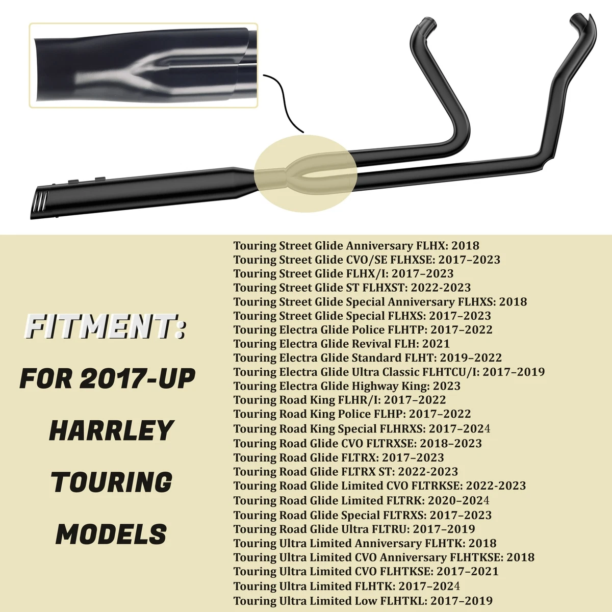 Black 2 into 1 Exhaust Pipe for Harley Davidson 2017 UP Touring